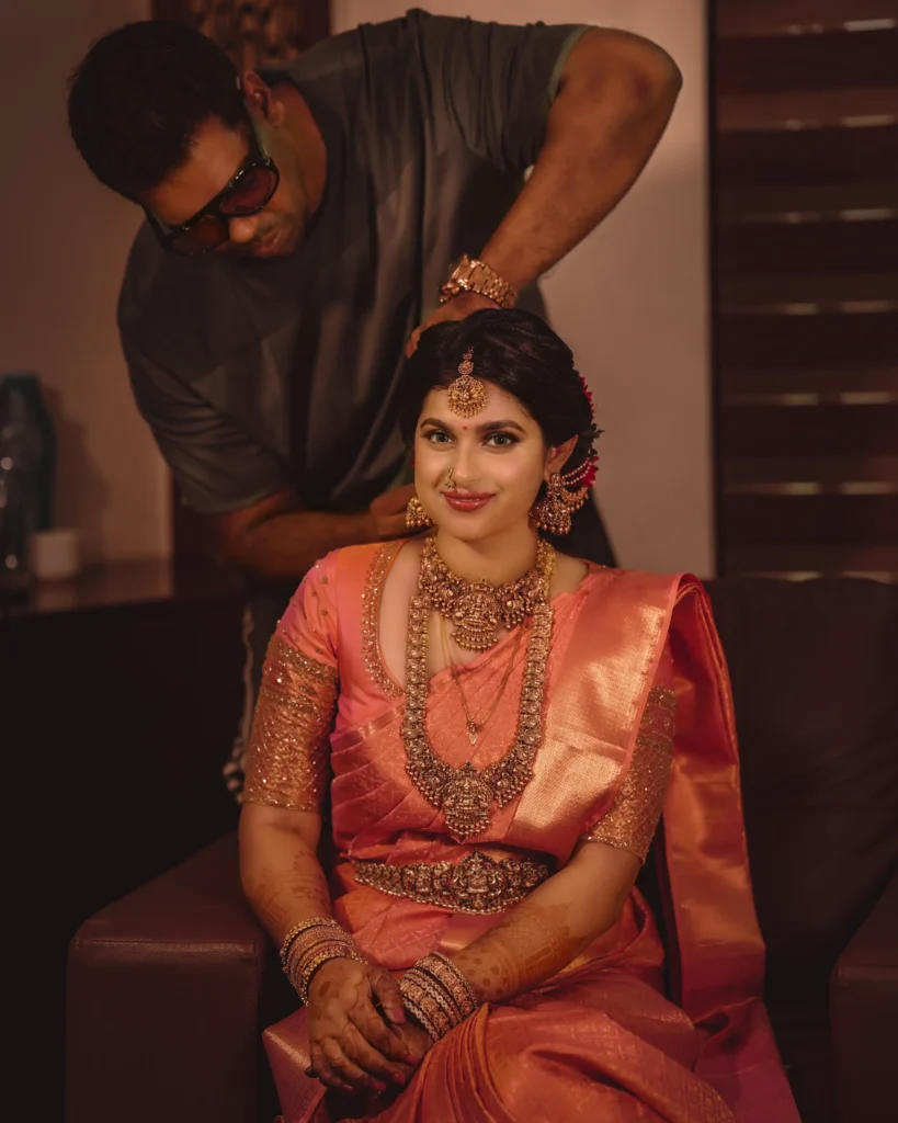 At My Fair Lady Beauty Makeover, the top makeup artist in Guruvayur, we specialize in creating flawless, elegant, and customized looks for every occasion. Our services include bridal makeup, groom makeovers, airbrush makeup, glass skin makeup, and guest or party makeup, along with professional hairstyling and saree draping to complete your perfect look. We focus on enhancing natural beauty using high-quality, skin-safe products and advanced techniques that ensure a long-lasting, radiant finish. Whether you prefer the timeless grace of traditional Kerala bridal makeup or the modern glow of dewy glass skin, our experienced artists tailor each service to suit your style, skin tone, and event. From brides and grooms to bridesmaids and family members, we make every client look camera-ready and confident for their big day. With a commitment to excellence, personalized care, and attention to detail, we take pride in being one of the most trusted choices for bridal and groom makeovers in Guruvayur and nearby areas.